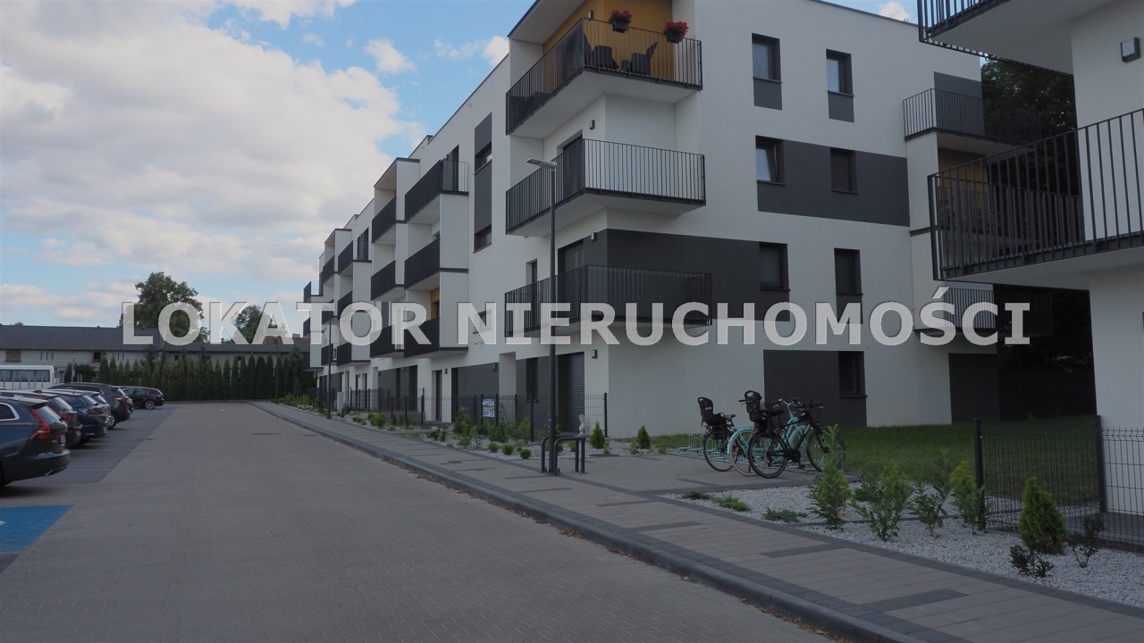 Blok z 2023 roku, przed blokiem znajduje się parking z dostępnymi miejscami parkingowymi dla mieszkańców.