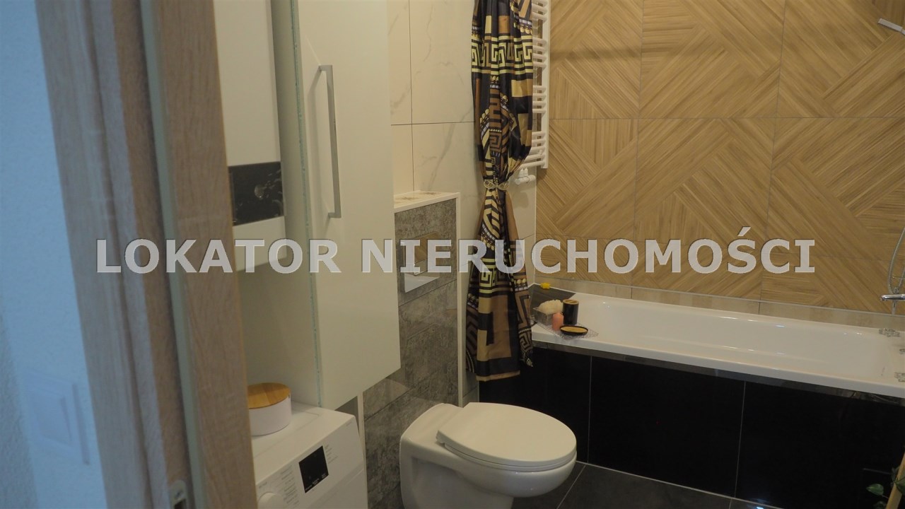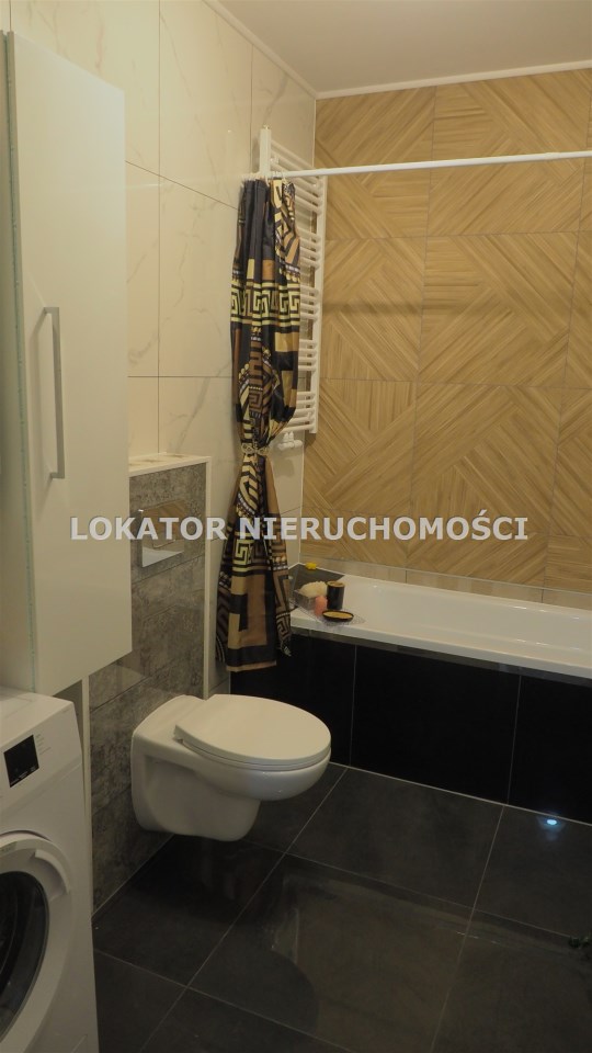 Duża łazienka wyposażona w wannę , pralkę.