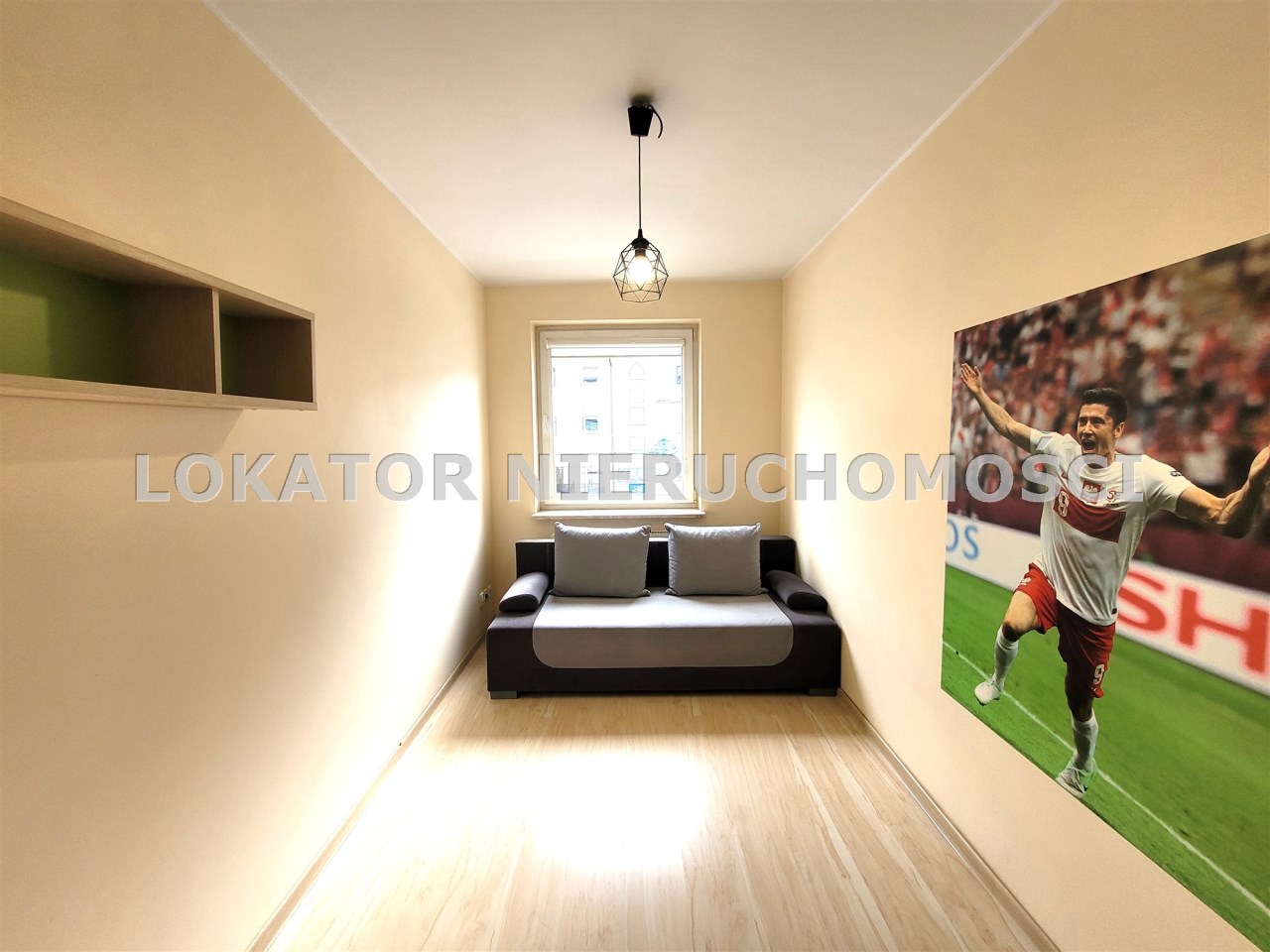 POKÓJ: sofa z funkcją spania, komoda, telewizor, regał